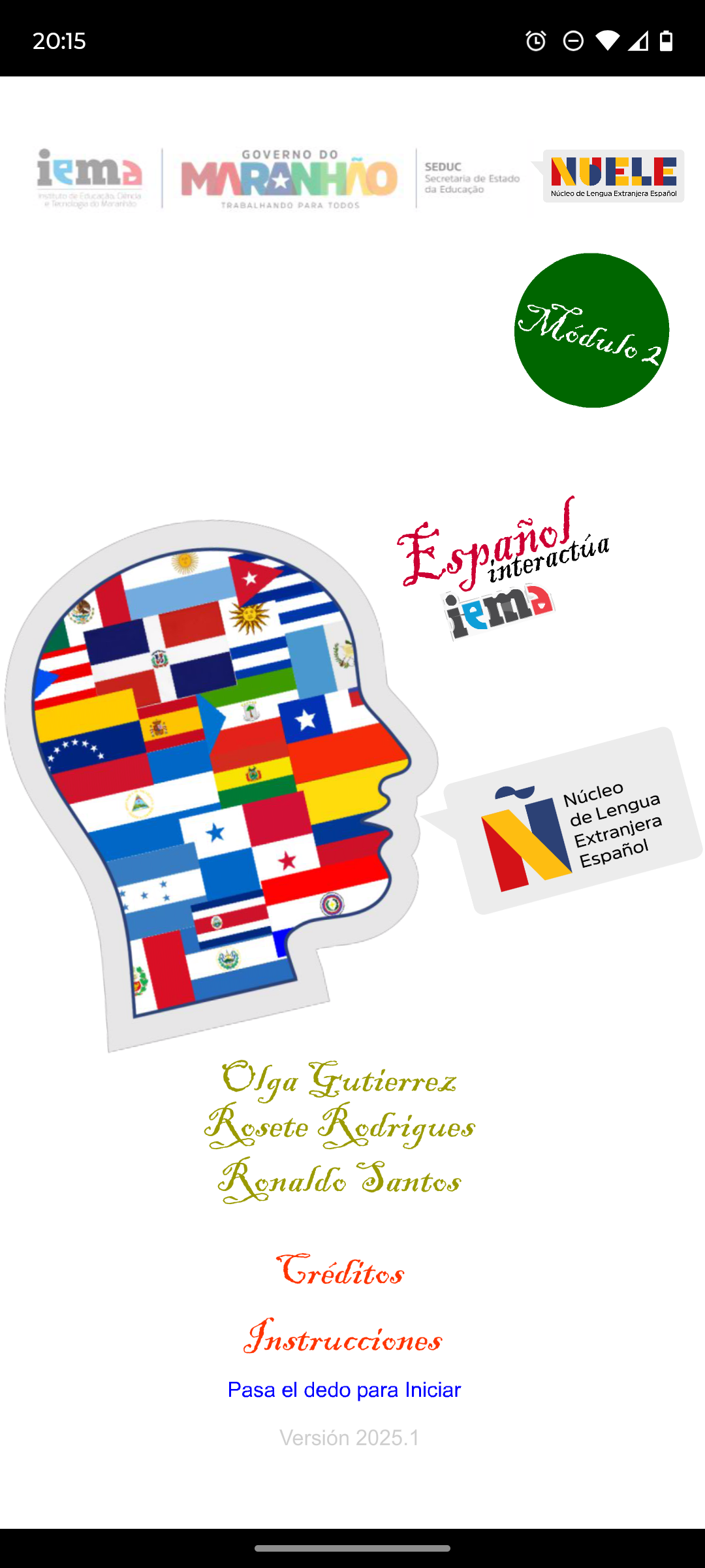 ESPAÑOL INTERACTÚA es una aplicación creada para la enseñanza de ELE en los IEMAs Plenos. Desarrollada por el profesor Ronaldo Santos, con el apoyo de la coordinación del NuELE, combina metodologías activas con tecnología educativa accesible.